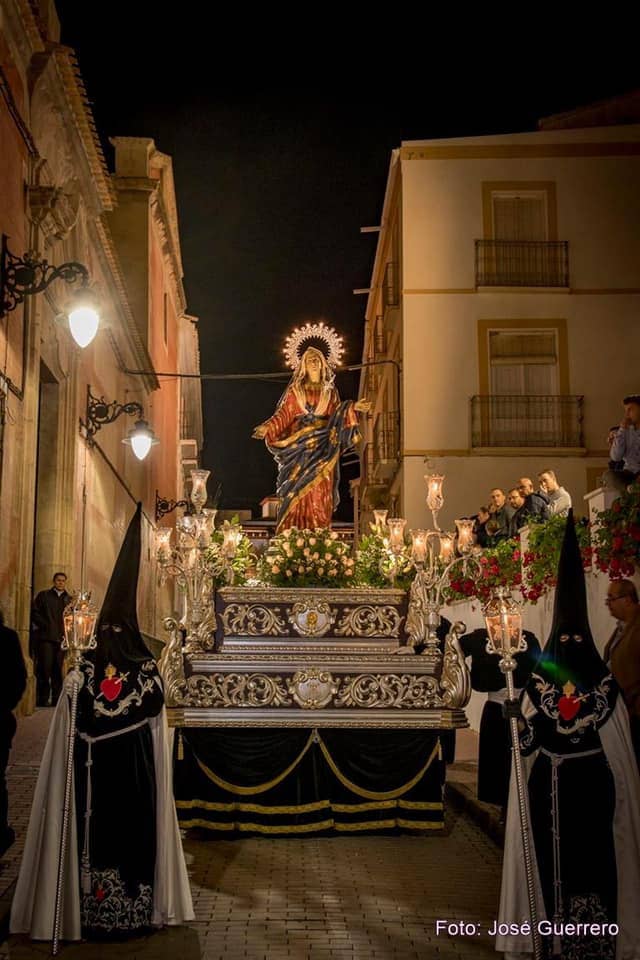 Realizan estación de penitencia Jueves y Viernes Santo, con cuatro pasos. Su imagen titular María Santísima de los Dolores realiza dos salidas más, la procesión de Viernes de Dolores y en el Santo Entierro la noche del Viernes Santo.
